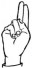 На ћирилици написано БОРИС ДАБИЋ састоји се из 10 слова [?]. Исписано ћириличном једноручном азбуком за глувонеме: